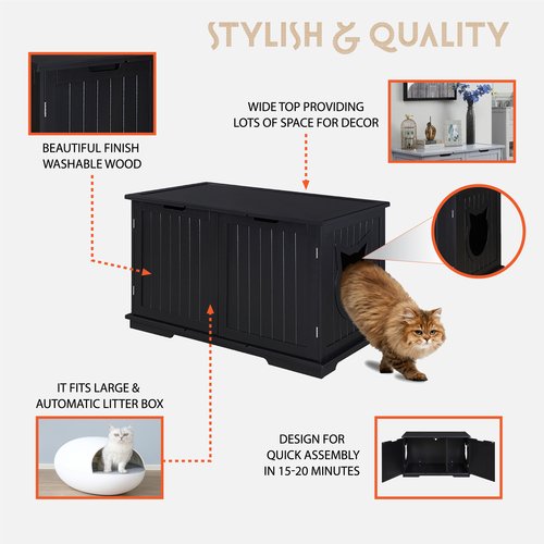 - Litter boxes of various sizes (extra-large, jumbo size, automated) can be placed.